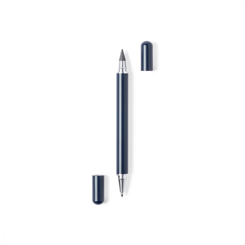 Шариковая ручка и вечный карандаш 2 в 1. Корпус выполнен из прочного металла с глянцевой отделкой. С закрывающимися колпачками. В индивидуальном черном футляре.