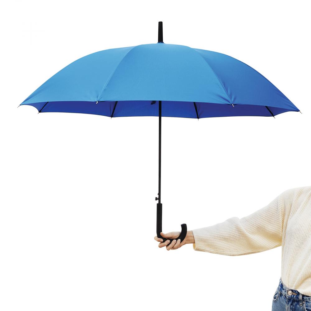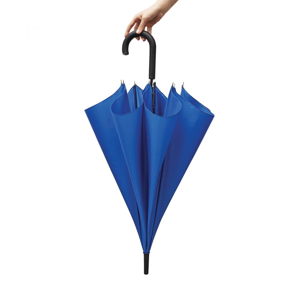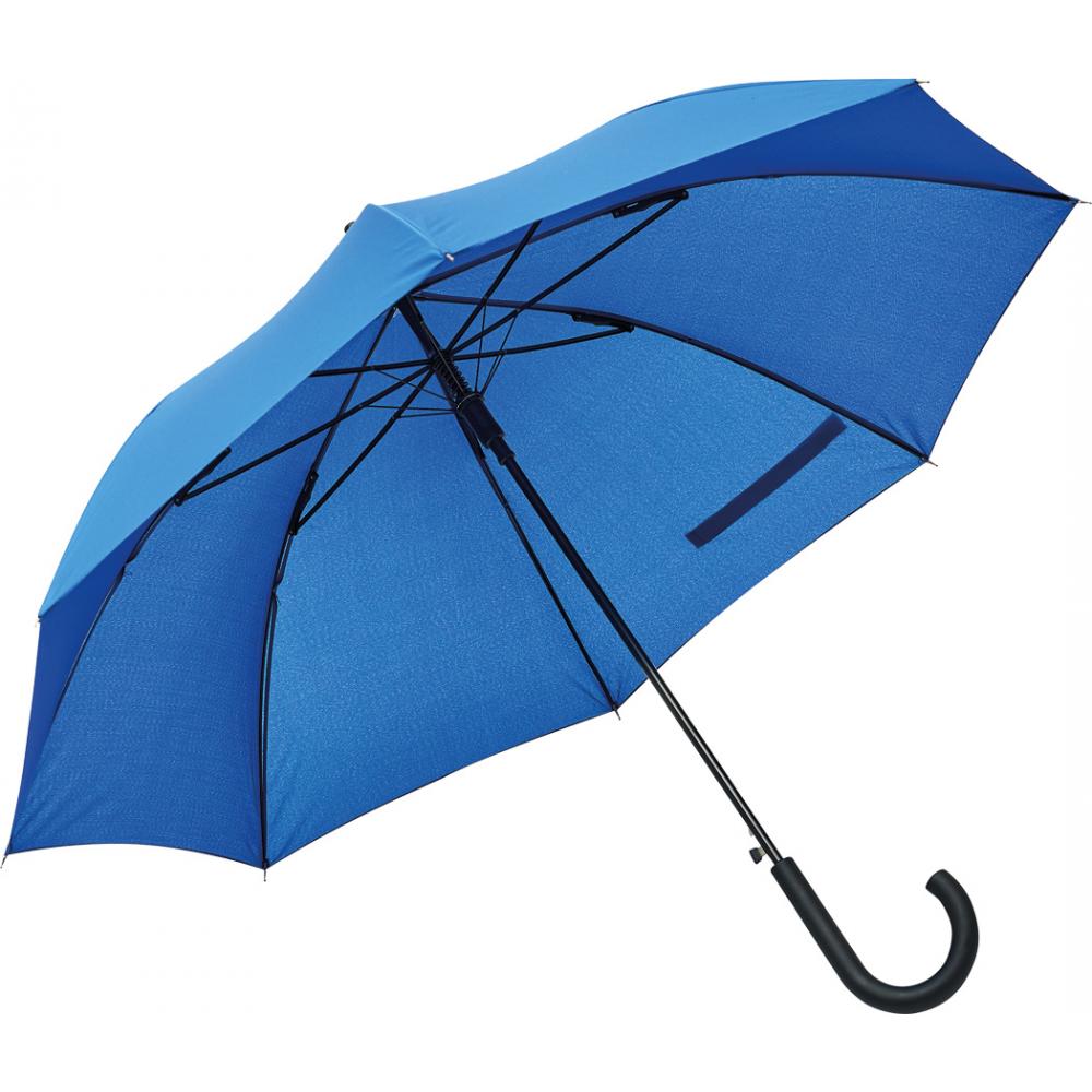 Автоматический зонт-трость WIND с ветрозащитой конструкцией, металлическим каркасом, стекловолоконными спицами и металлическими наконечниками с резиновой ручкой в форме крюка и полиэстеровым куполом из понжа, закрывается на липучку.