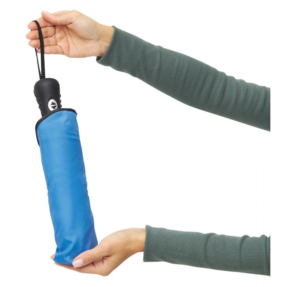 Автоматический открывающийся / закрывающийся ветрозащитный карманный зонт BORA, 3-секционный металлический стержень, ребра из алюминия, пластика и стекловолокна, металлические наконечники, ручка с резиновым покрытием, навес из полиэстера со специальным водостойким покрытием, застежка на липучку