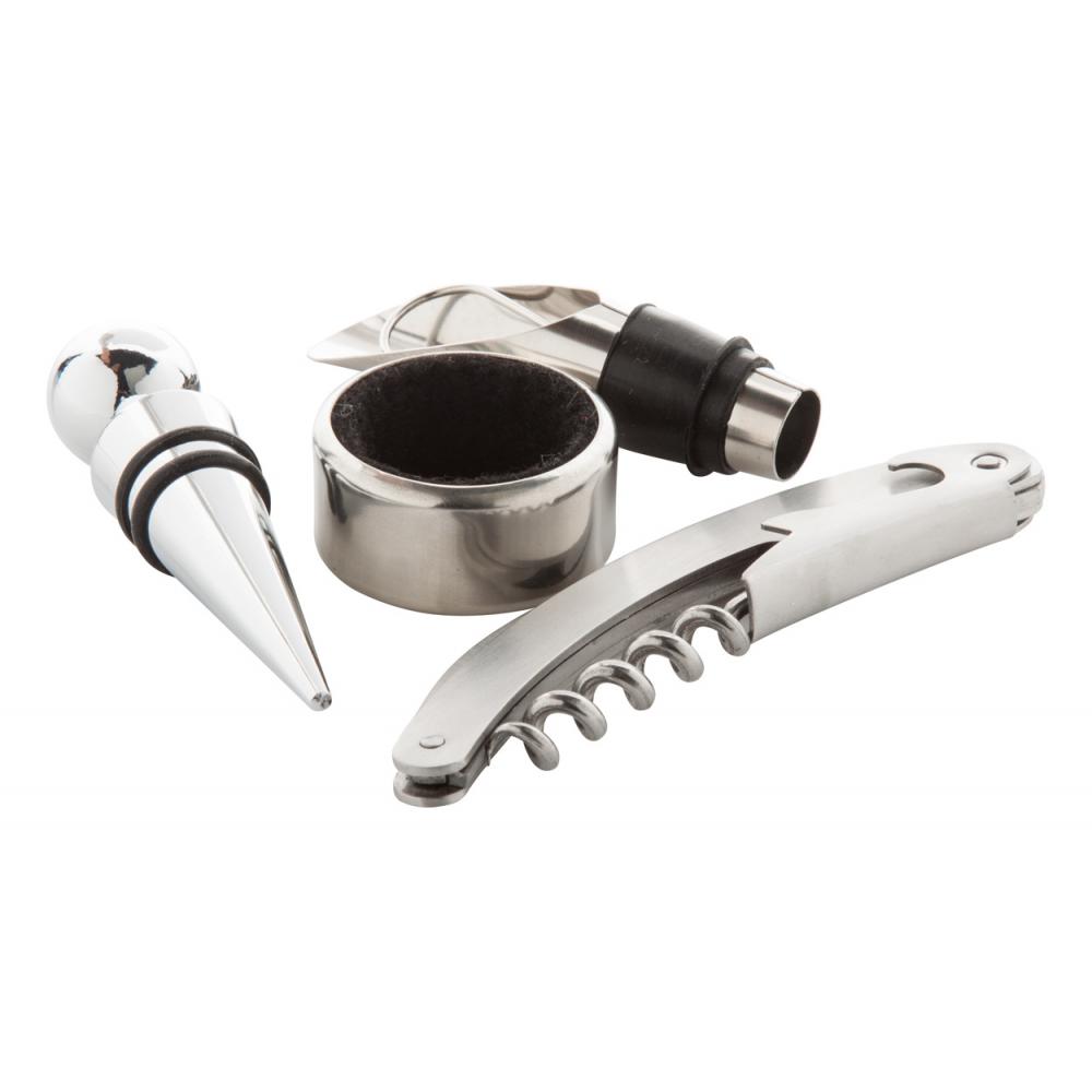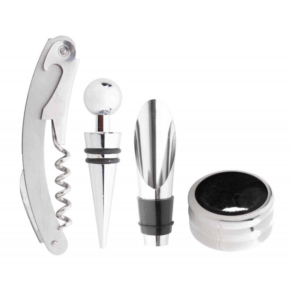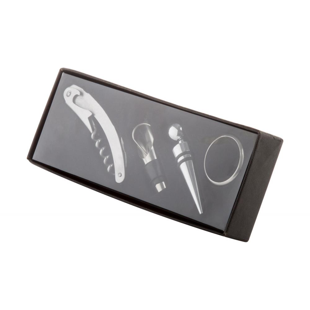 Винный набор с 4 винными аксессуарами, в черной подарочной коробке.