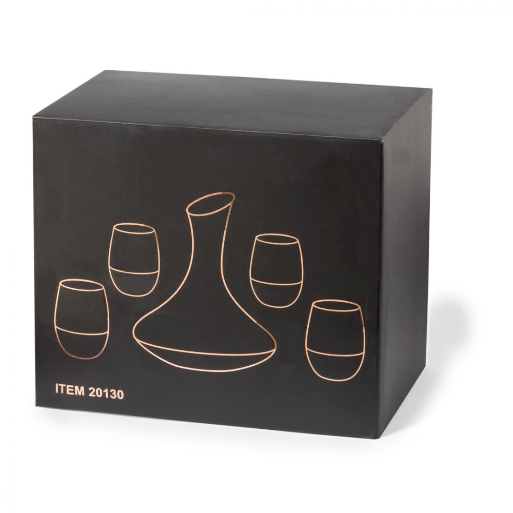 Винный набор из стекла, включающий в себя 4 стакана по 500 мл и графин 1,8 л. С гальванизированным медным покрытием снаружи. Представлен в эксклюзивной черной коробке