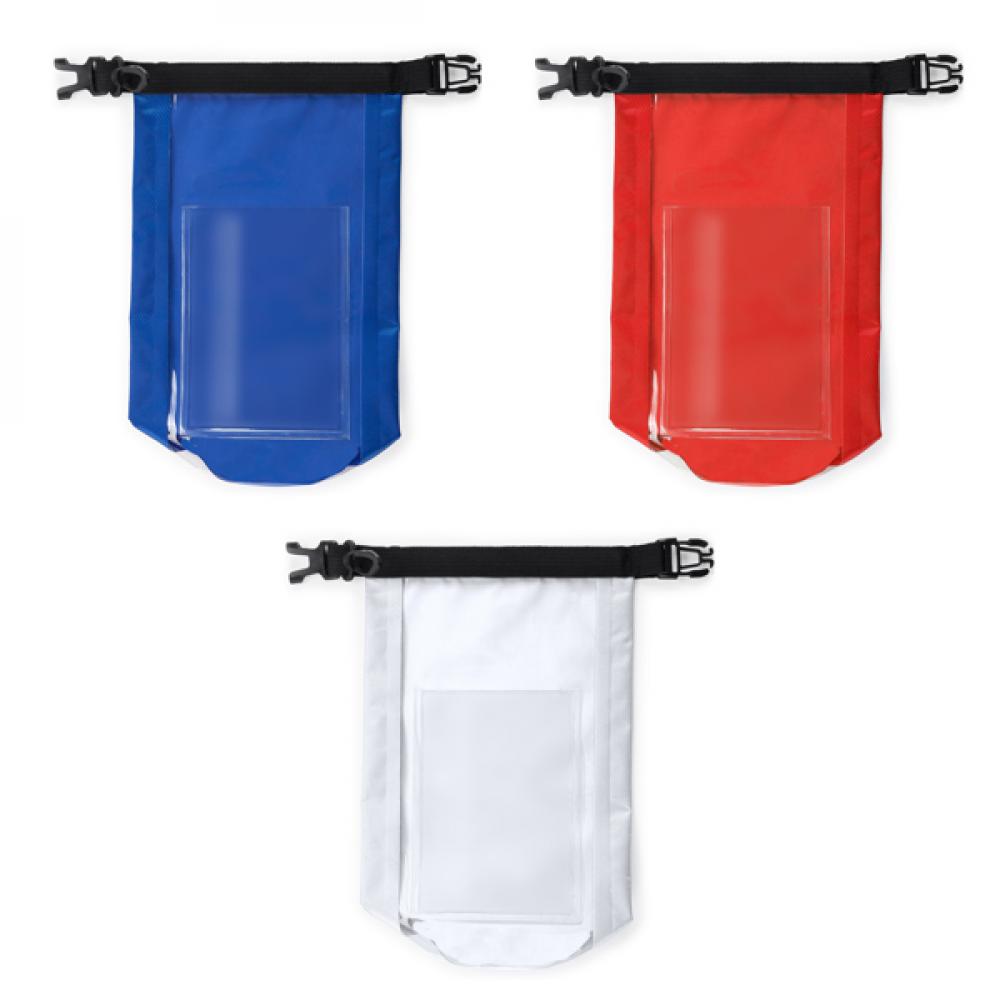 Водонепроницаемая сухая сумка из прочного рипстопа с карманом для мобильного телефона. Герметичное закрывание с карабином. Вместимость 2,5 литра.