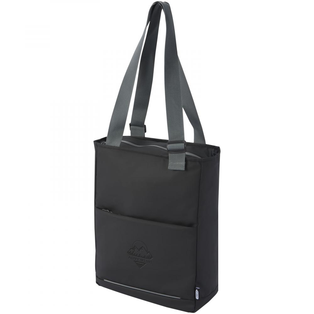 Водонепроницаемая сумка-тоут для ноутбука, изготовленная из переработанных материалов по стандарту GRS, включая молнии. Она оснащена специальным отделением для планшета, отделением для ноутбука размером 14 дюймов, множеством карманов для организации, передним карманом с организационной панелью, регулируемыми ручками длиной 35 см и ремнем для крепления к багажу. Переработанные материалы по стандарту GRS включают основную ткань, подкладку, ленты и молнии. Вместимость: 14 литров. Не содержит ПВХ.