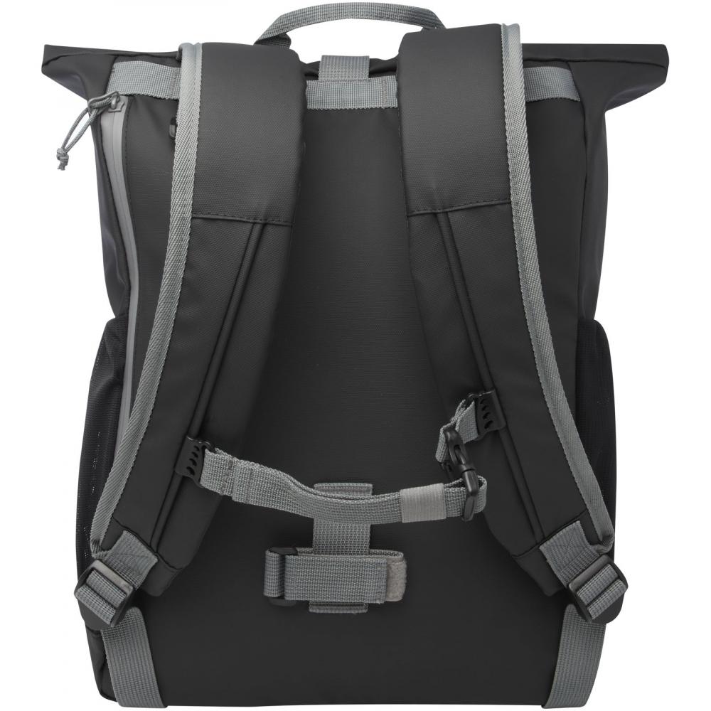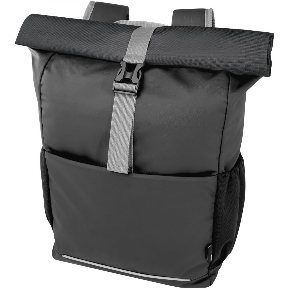Водонепроницаемая велосипедная сумка с закручивающимся верхом, изготовленная из сертифицированных по GRS переработанных материалов. Она оснащена мягким отделением для 15-дюймового ноутбука, множеством карманов для организации, регулируемым креплением на липучке для легкой установки на различные велосипеды и светоотражающей окантовкой для видимости. Переработанные материалы GRS включают основную ткань, подкладку, ленты и молнии. Вместимость: 20 литров. Не содержит ПВХ.