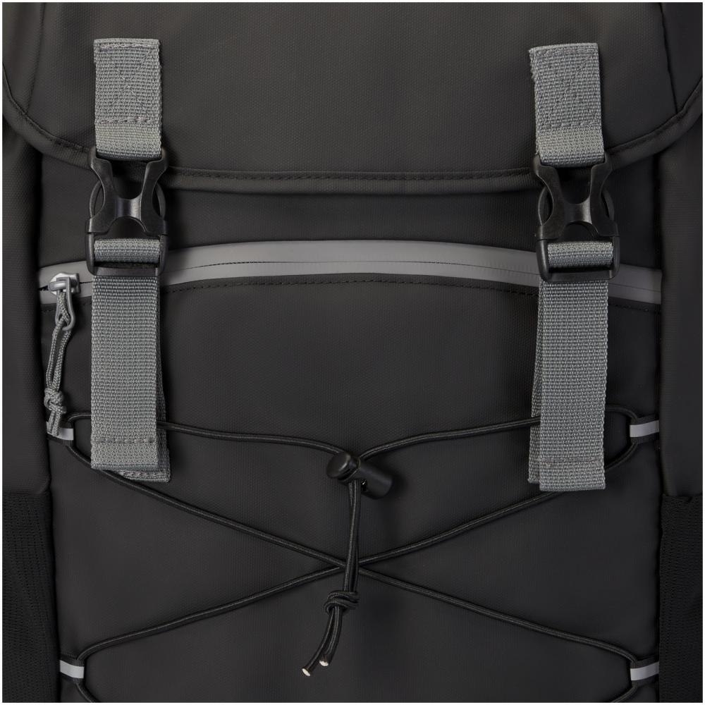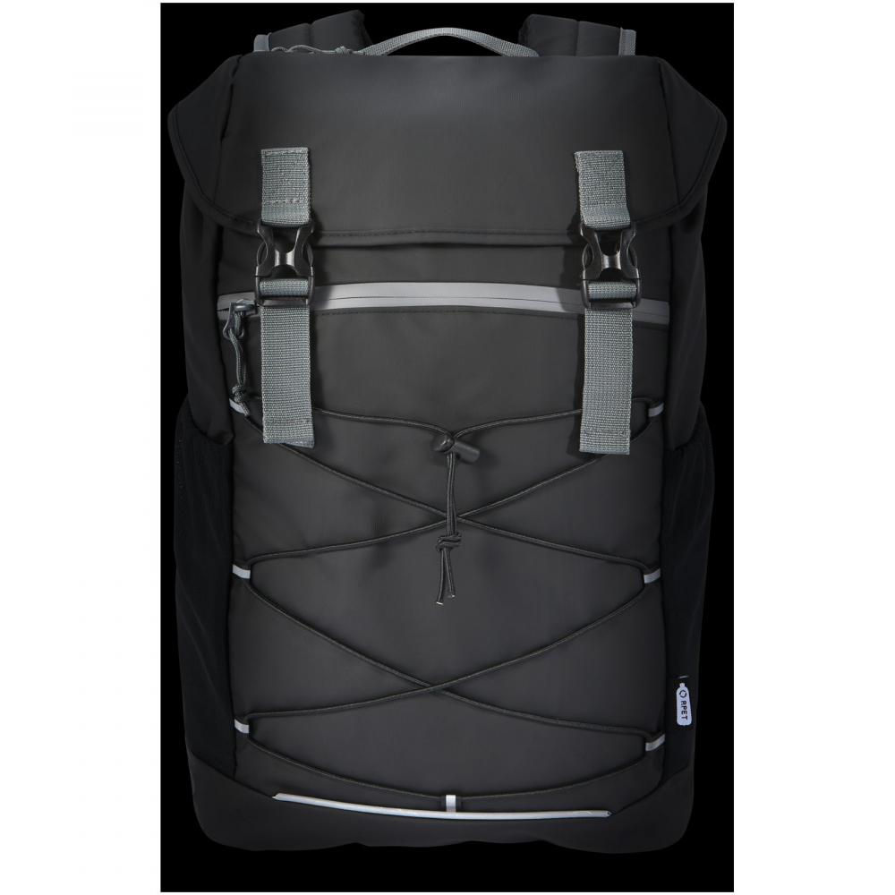 Водонепроницаемый рюкзак для ноутбука, изготовленный из сертифицированных по стандарту GRS переработанных материалов, включая молнии. Он оснащен просторным отделением для ноутбука размером 15,6 дюйма с шнурком и регулируемыми пряжками для максимального увеличения объема хранения под крышкой. Этот рюкзак имеет несколько карманов, включая передний карман на молнии с эластичными шнурками для хранения и организации, а также светоотражающую окантовку для видимости. Формованная и мягкая спинка и регулируемый нагрудный ремень делают его удобным для ношения даже при полной загрузке. Переработанные материалы GRS включают основную ткань, подкладку, ленты и молнии. Вместимость: 23 литра. Не содержит ПВХ.