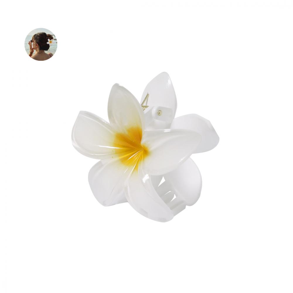 Заколка для волос с оригинальным дизайном в форме белого цветка с желтым центром. Имеет 8 прочных зубцов, обеспечивающих комфортное и надежное крепление.