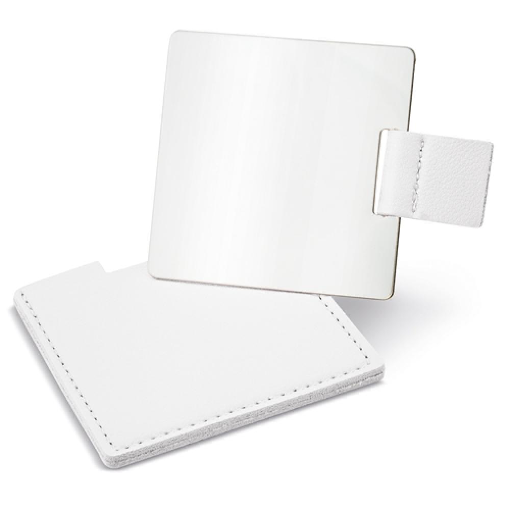 Каждое зеркало поставляется в индивидуальном футляре, соответствующем цвету язычка, который легко вынимается. Доступно в золотистом, розовом и белом цветах.