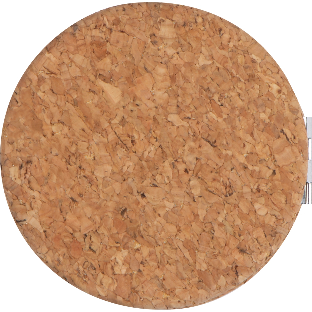 Зеркало в пробковом корпусе, одна часть зеркала обычная, другая увеличивающая.