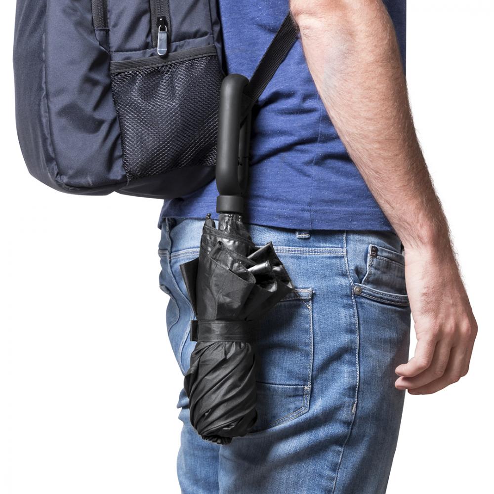 Складной зонт из 8 панелей различных оттенков. диаметр 100 см, открывается вручную, с системой защиты от ветра и из прочного материала pongee. С ребрами из черного волокна, застежкой на липучке и эргономичной ручкой со встроенным карабином. Представлен в индивидуальном футляре соответствующего цвета.