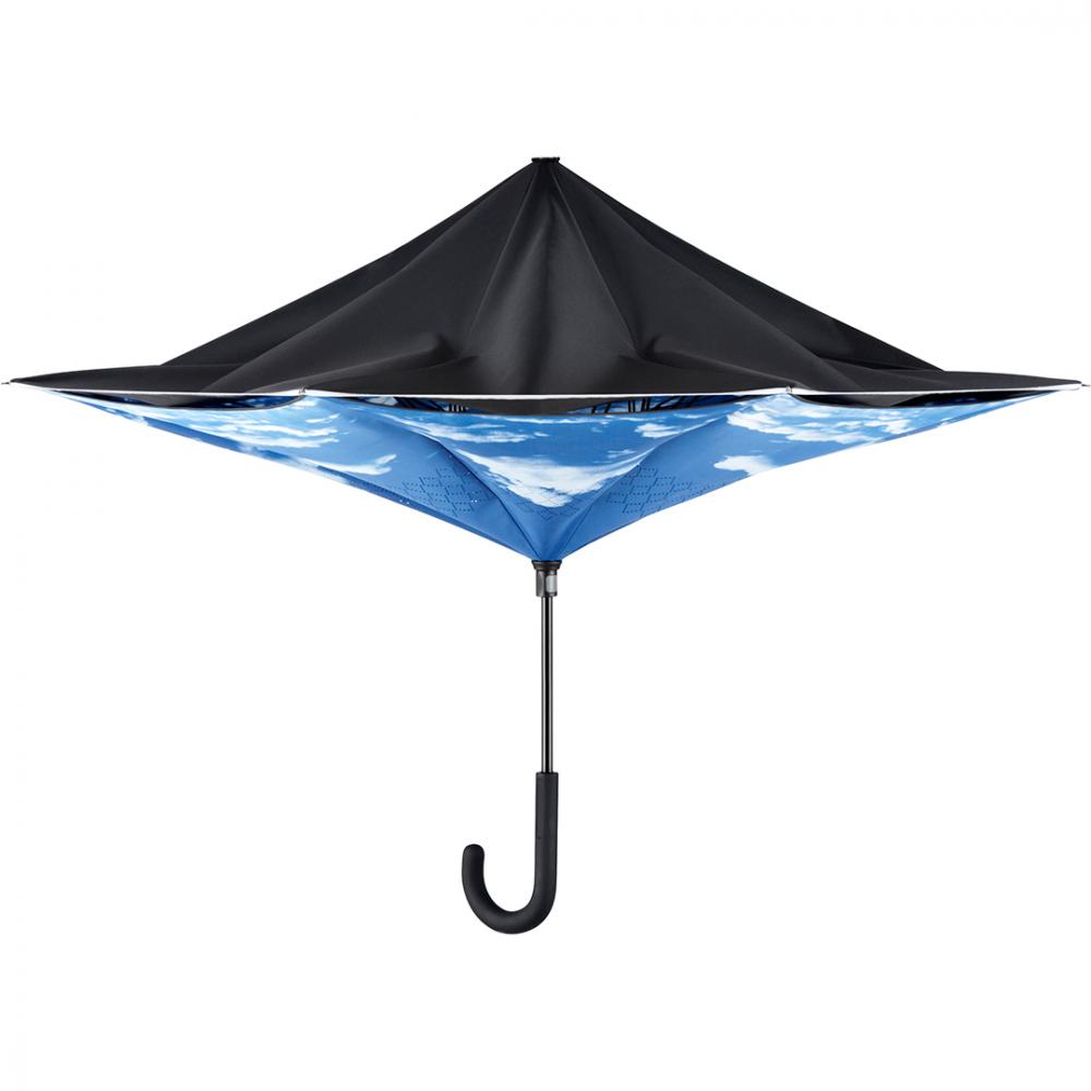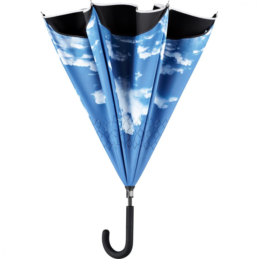 Легко управляется благодаря скользящему защитному механизму, высококачественная ветрозащитная система обеспечивает максимальную гибкость каркаса в штормовых условиях, каркас из стекловолокна открывается изнутри наружу, гибкие спицы из стекловолокна, двойной купол с лазерной вентиляцией для предотвращения накопления воздуха, стильная светоотражающая окантовка серебристого цвета, мягкая изогнутая ручка с возможностью нанесения рекламной надписи. Также доступен в виде мини-зонта.