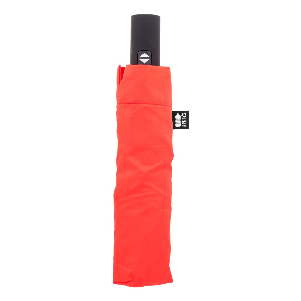 Полностью автоматический (открывание/закрывание), ветрозащитный складной зонт с 8 панелями в сумке подходящего цвета. С металлической рамой, стекловолоконными спицами и резиновой ручкой. 190T RPET понж. С характерной этикеткой RPET.
