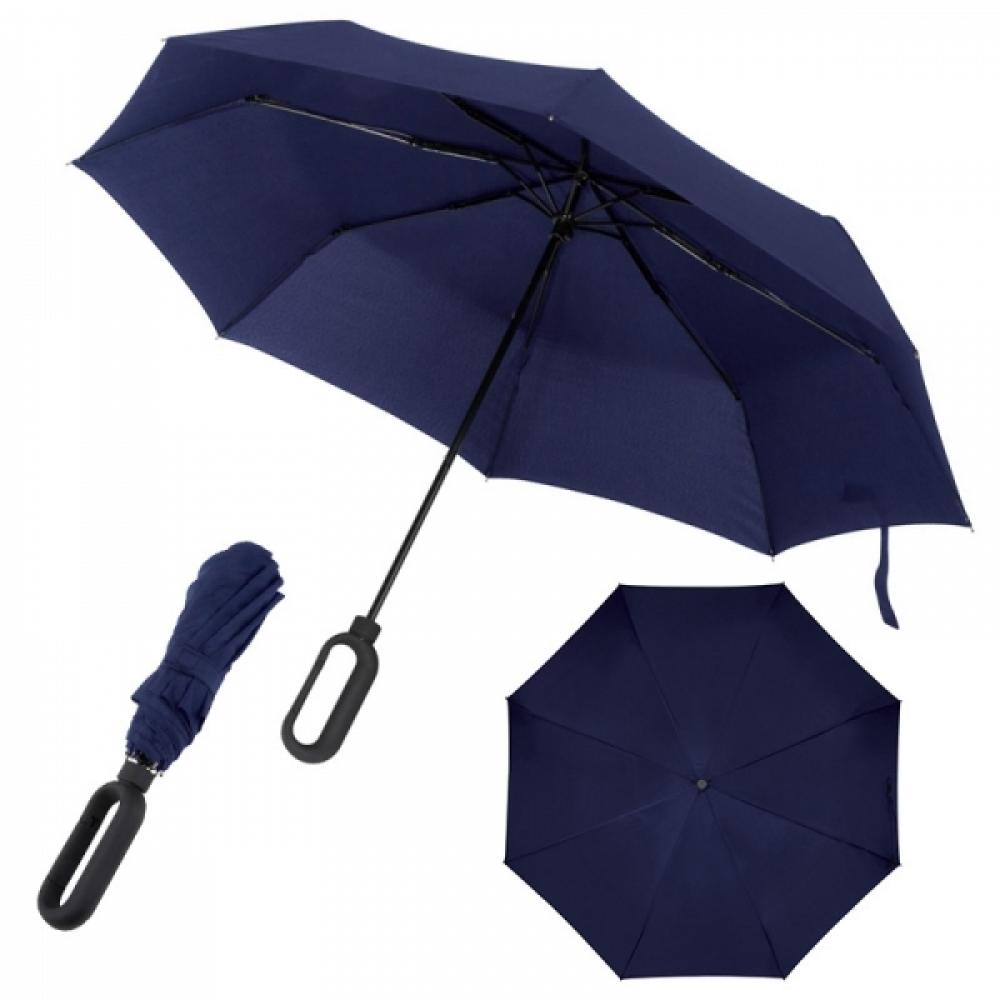 Зонтик с прорезиненной ручкой-карабином. Логотип можно нанести на панели.