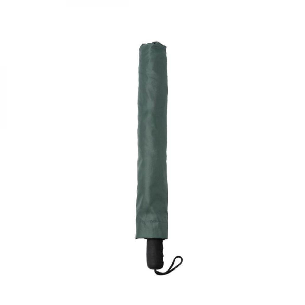 Складной зонт из RPET с автоматическим открыванием. Ткань понж 210T. Стеклопластиковые стержни с системой защиты от бури и рукоятка из EVA. Липучка для фиксации. В комплекте идет подходящий чехол.