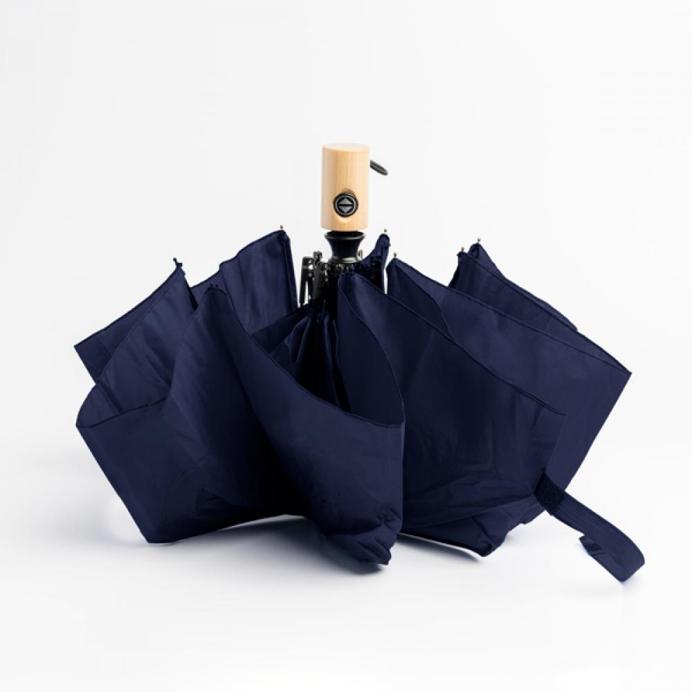 Зонт с автоматическим открыванием и закрыванием из 190T понжа с сумкой в тон. Ветрозащитные стержни и наконечники черные, ручка из дерева. Застежка на липучке в тон. Идеальный зонт для ветреных дней.