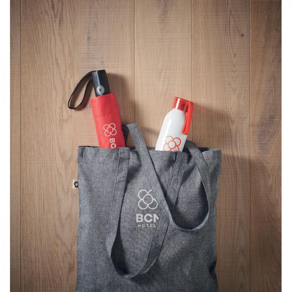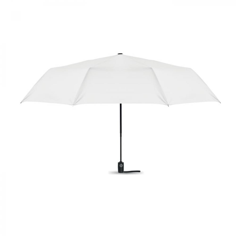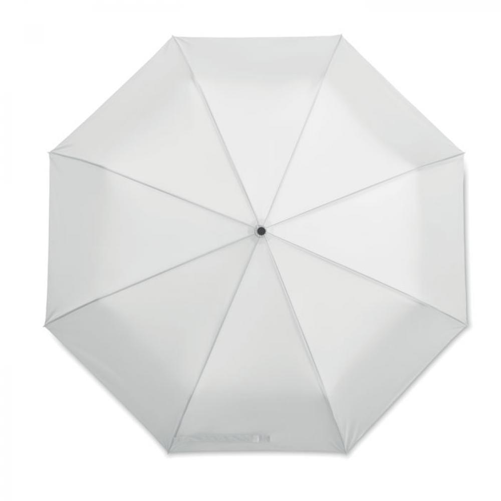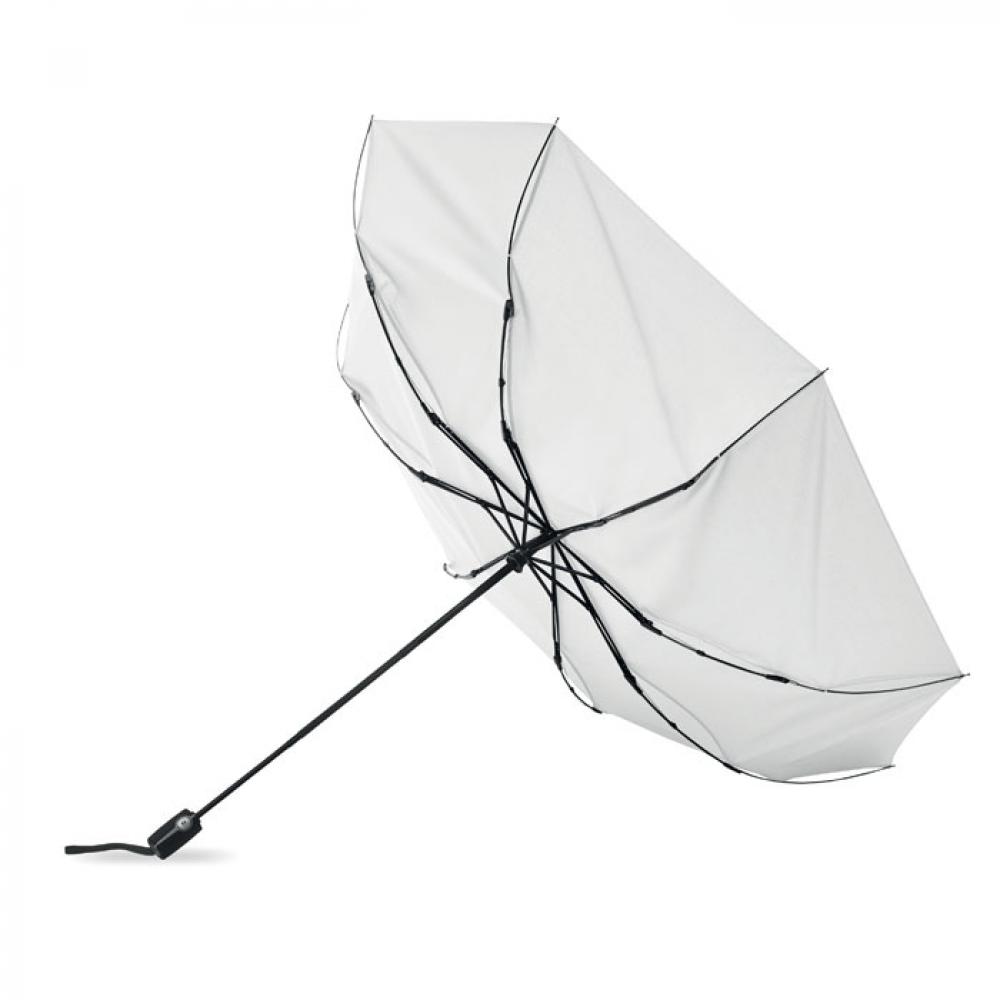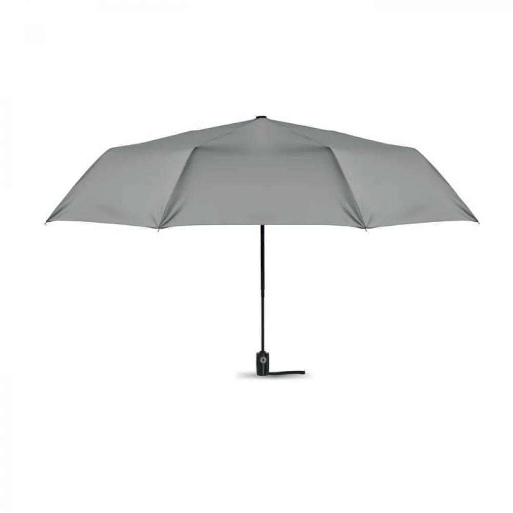 27-дюймовый ветроустойчивый зонт автомат в 3 сложения. Материал 190T эпонж, стальной стержень с черным покрытием. Спицы из стекловолокна. Черная полипропиленовая ручка с кнопкой. В комплекте с чехлом.