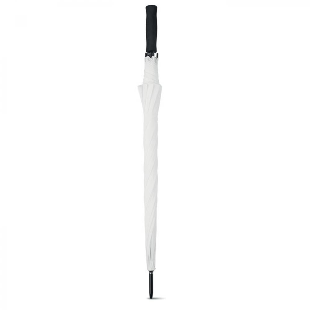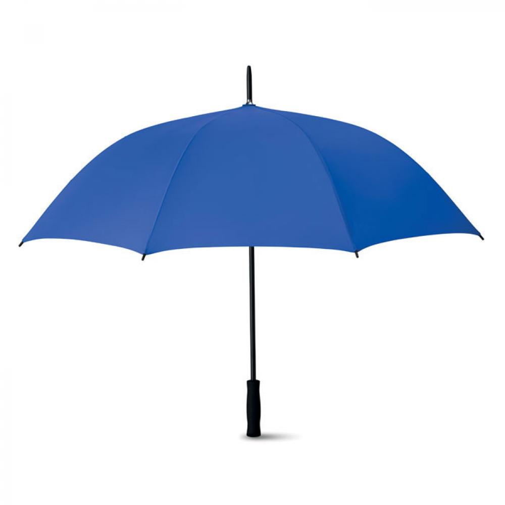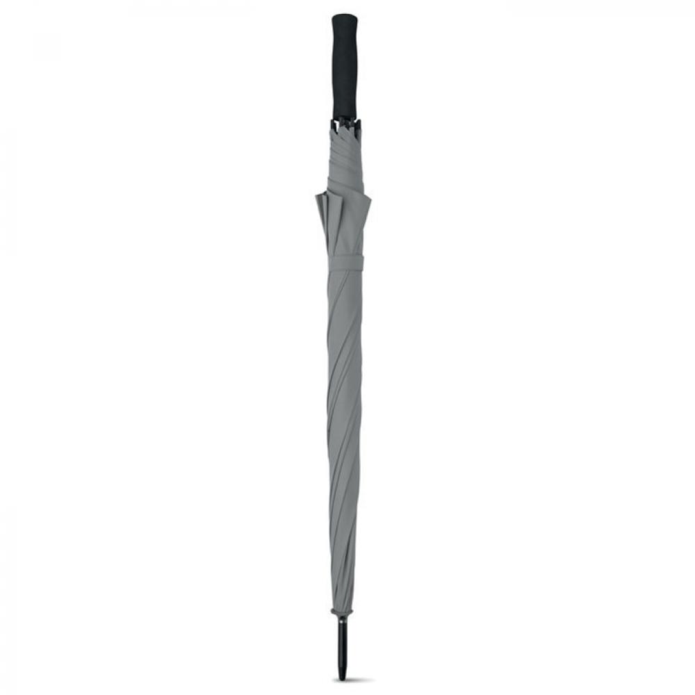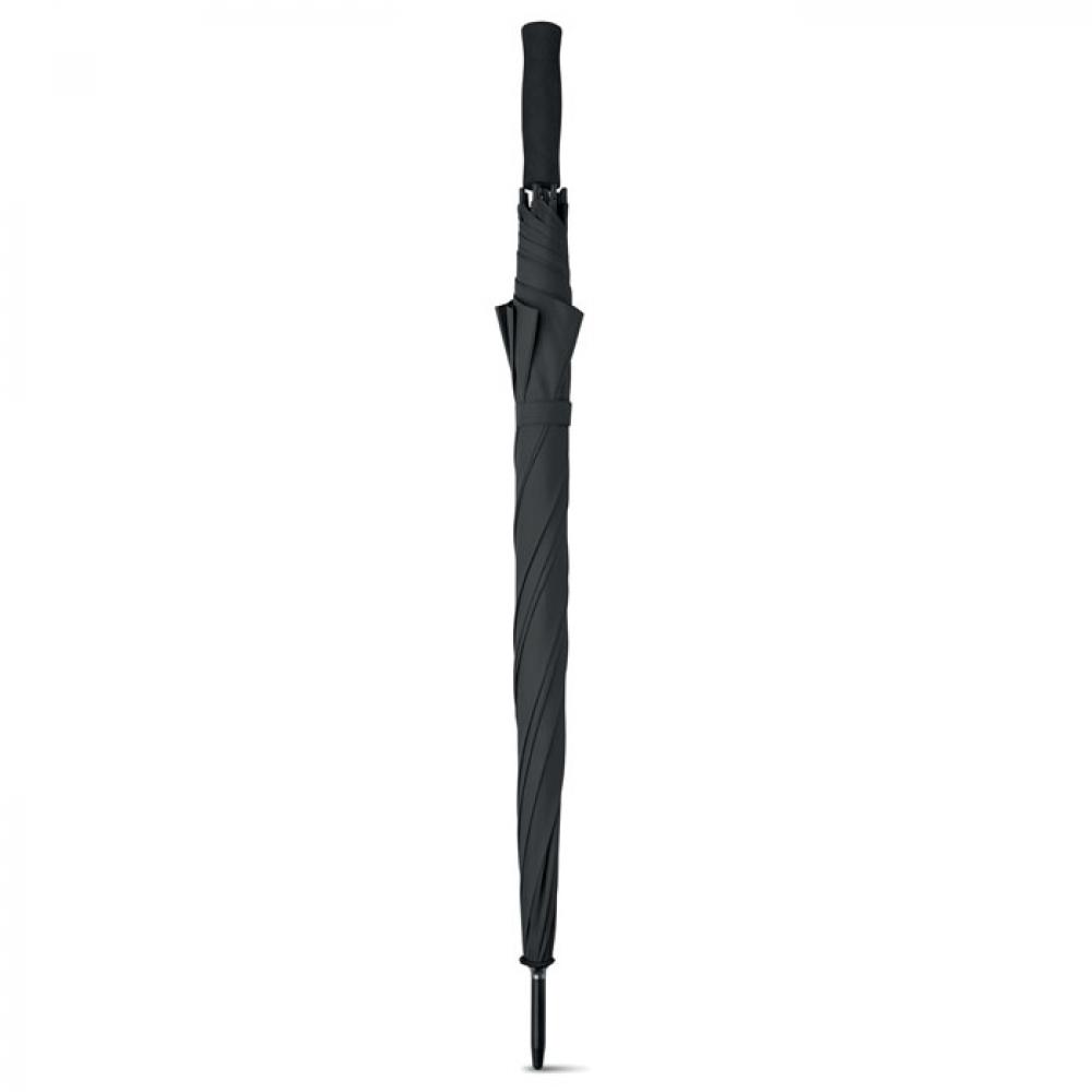 27-дюймовый автоматический зонт с куполом из ткани понже 190T, с черным металлическим стержнем и спицами. Черные пластиковые наконечники. Прямая ручка из черного EVA. Ручное закрытие.