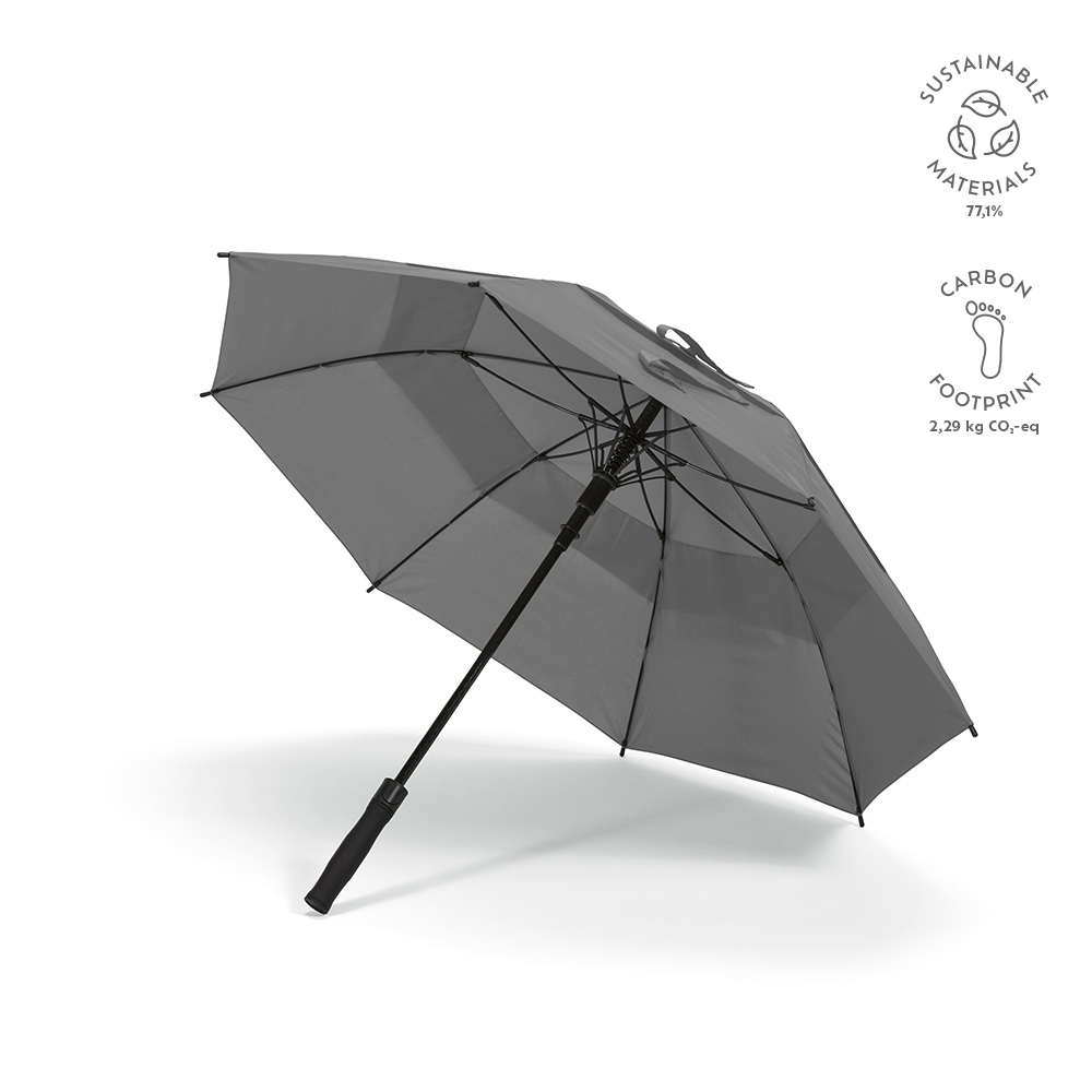 Справьтесь с дождем с нашим зонтом из переработанного ПЭТ диаметром 23 дюйма. Устойчивая к штормам конструкция из стекловолокна, вертикальная ручка из переработанного ABS и 8 панелей. Открывается автоматически для быстрой защиты. Экологичная упаковка в индивидуальном чехле из переработанного ПЭТ. Оставайтесь сухими с элегантностью.