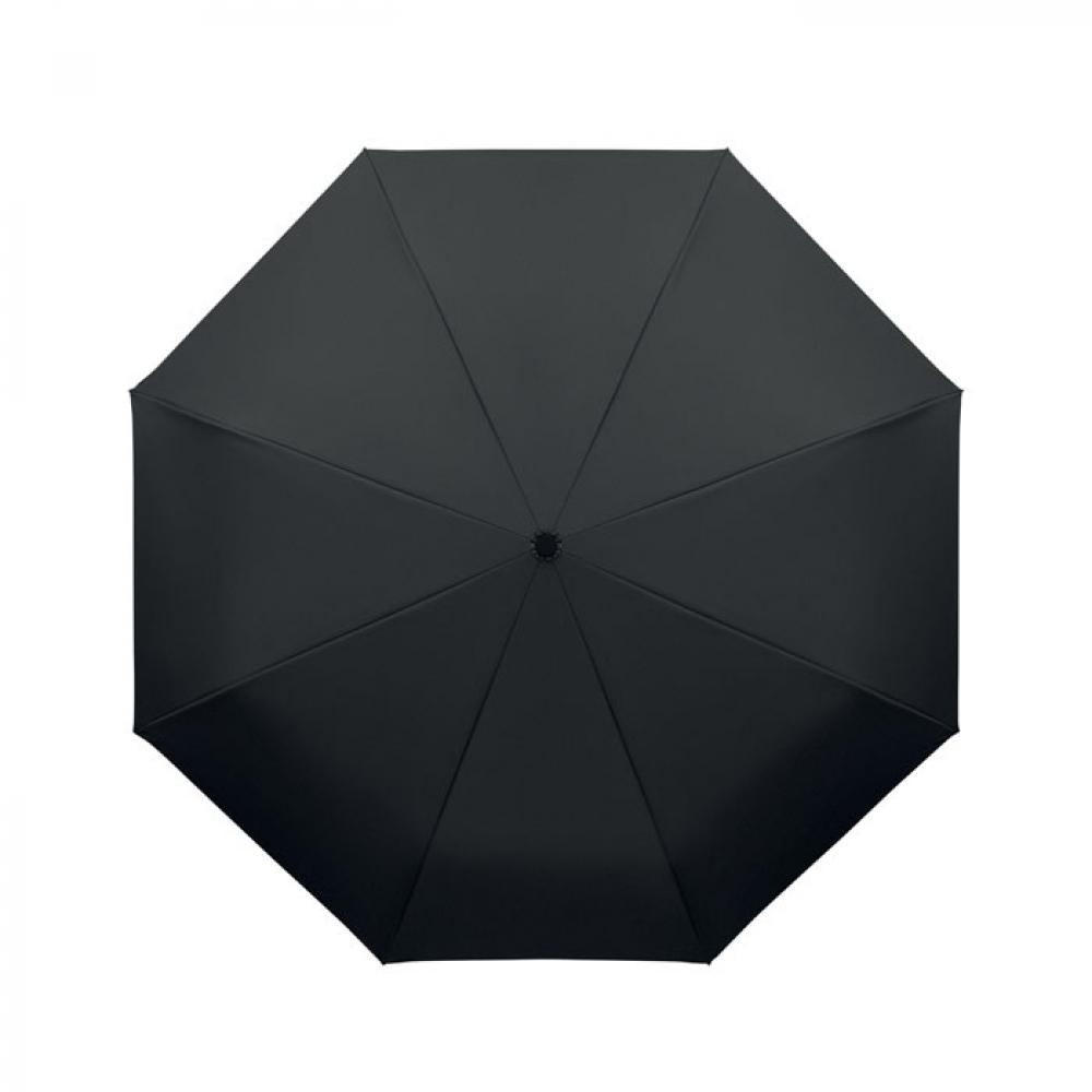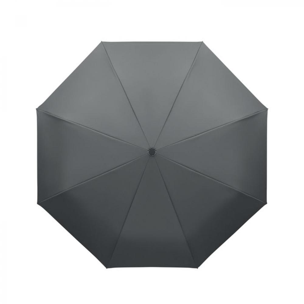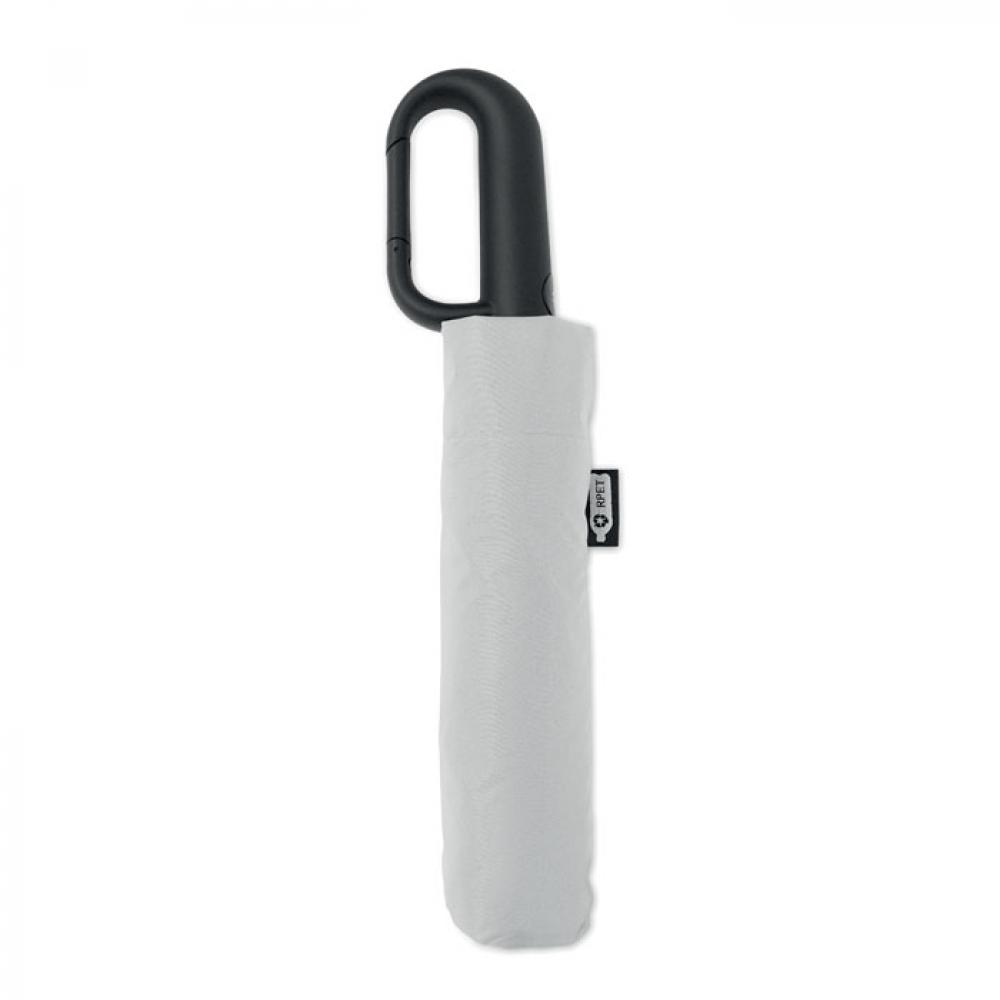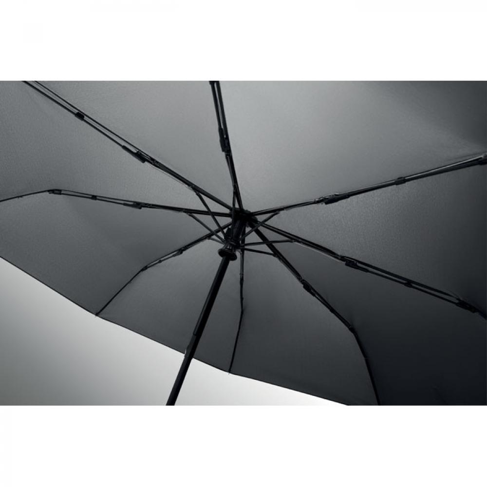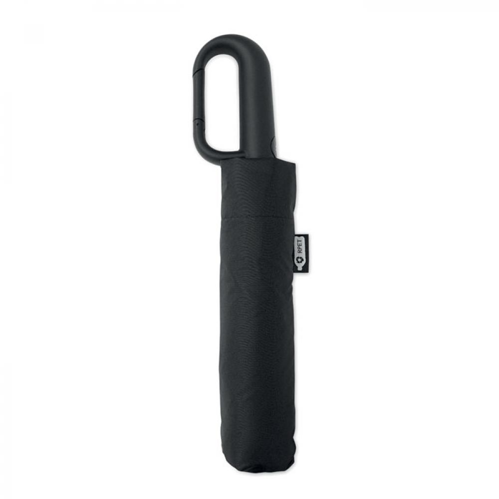 "Складной ветроустойчивый зонт 21"" из эпонжа RPET 190T с каркасом и спицами из стекловолокна. D-образная ручка-карабин с резиновым покрытием. Автоматическое открывание и закрывание. В комплект входит чехол."