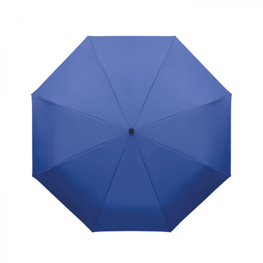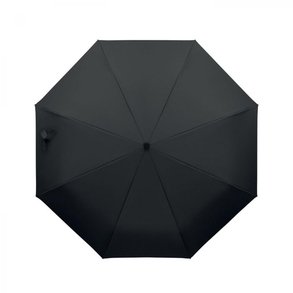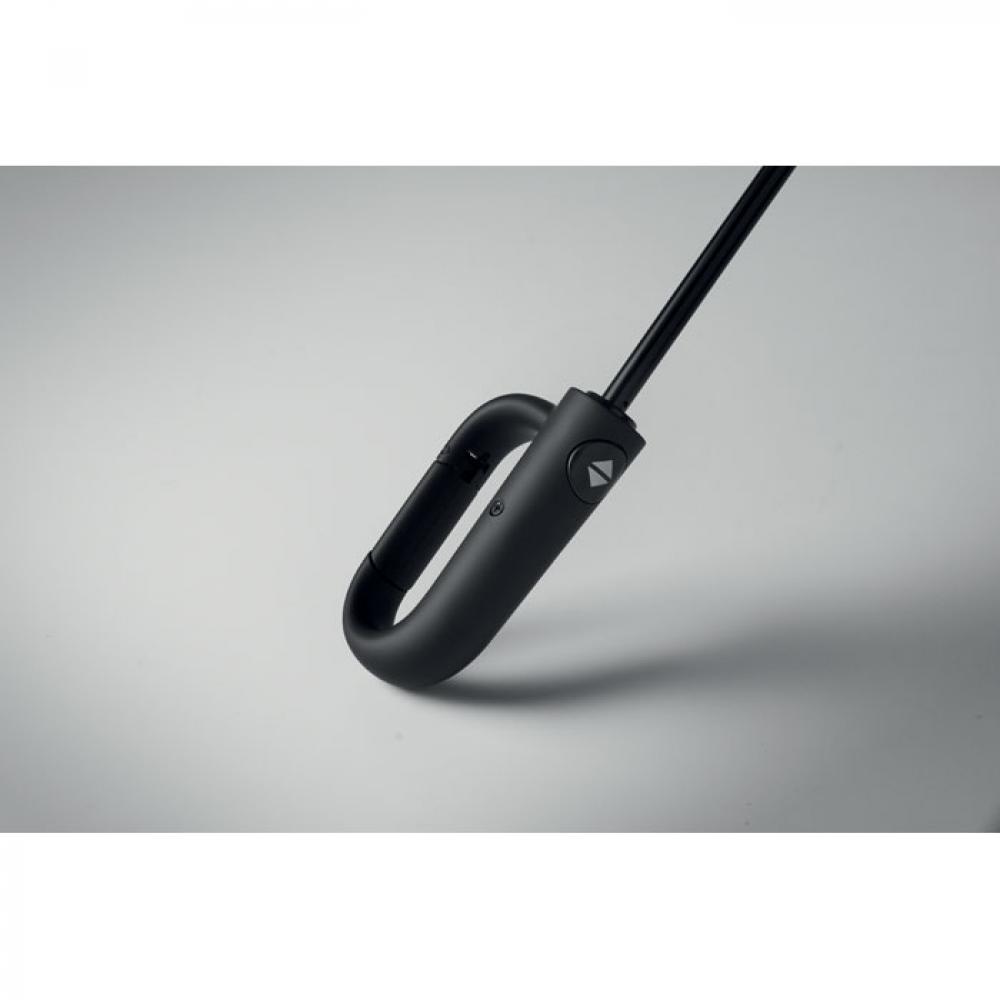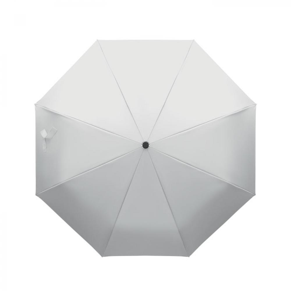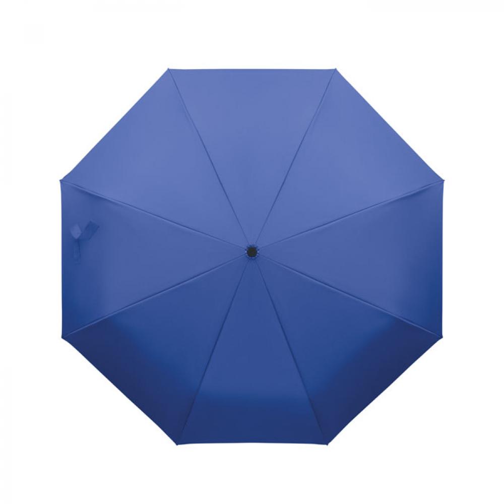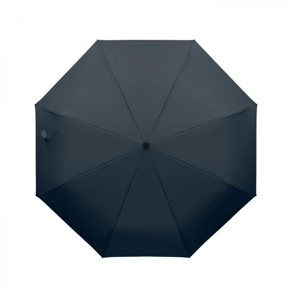 "Складной ветроустойчивый зонт 21"" из эпонжа RPET 190T с каркасом и спицами из стекловолокна. D-образная ручка-карабин с резиновым покрытием. Автоматическое открывание и закрывание. В комплект входит чехол."