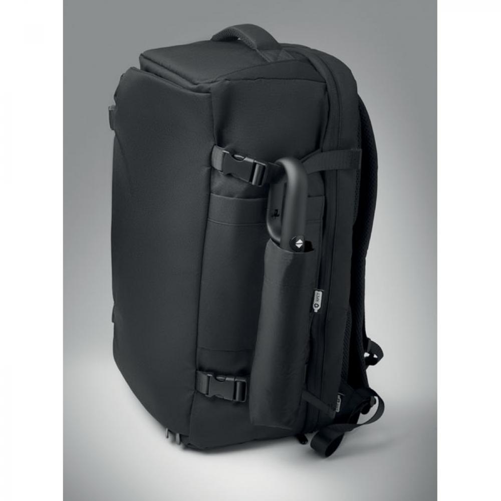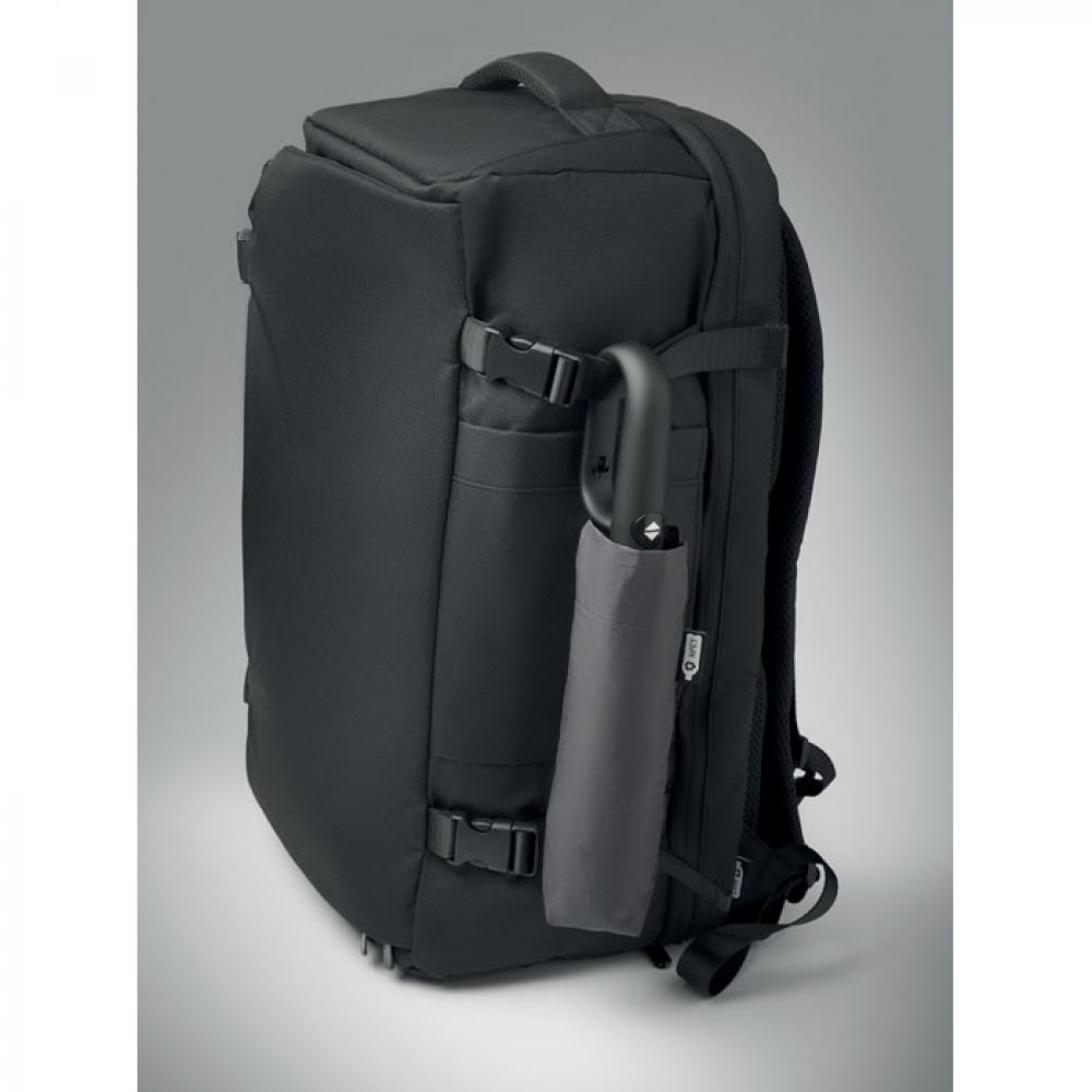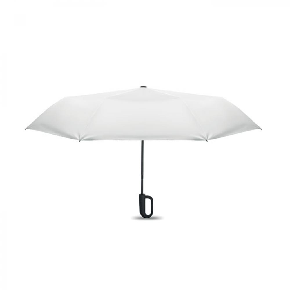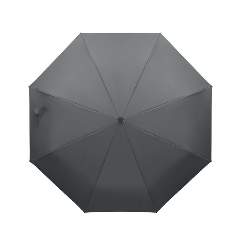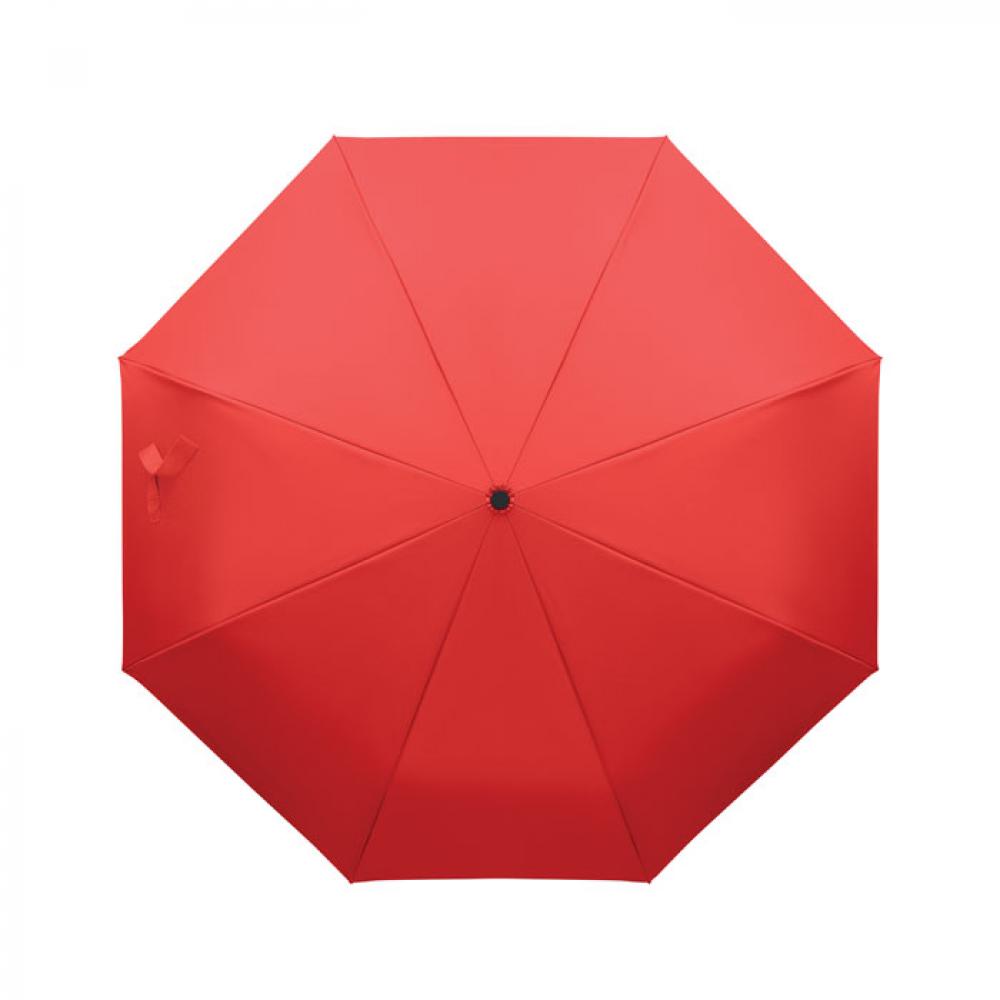 "Складной ветроустойчивый зонт 21"" из эпонжа RPET 190T с каркасом и спицами из стекловолокна. D-образная ручка-карабин с резиновым покрытием. Автоматическое открывание и закрывание. В комплект входит чехол."