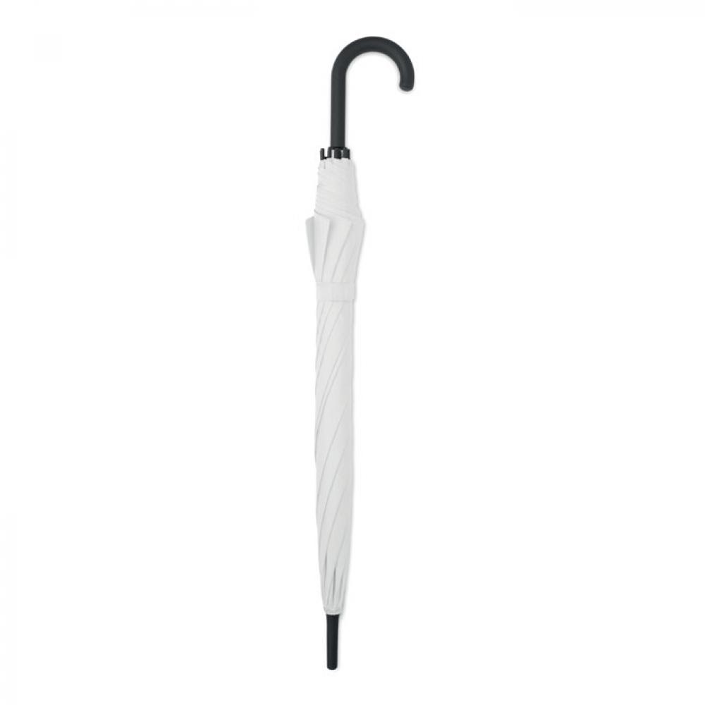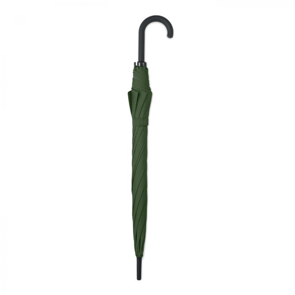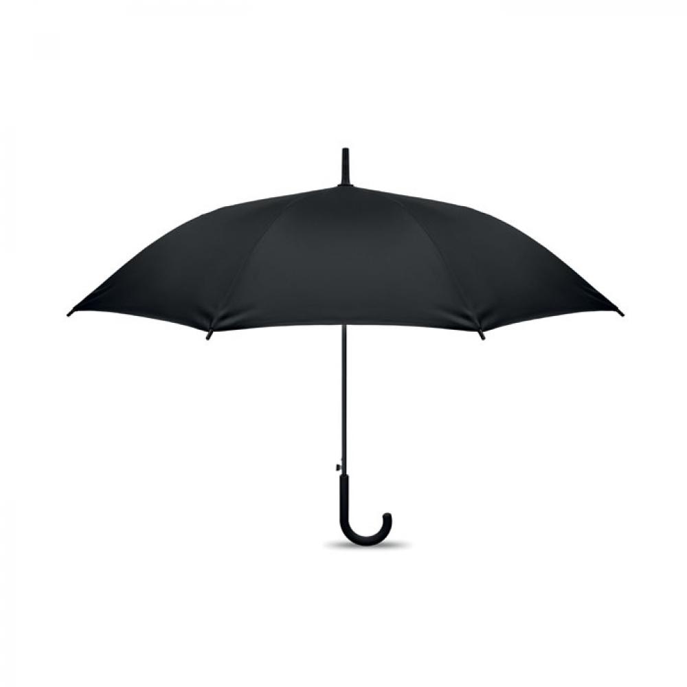 23-дюймовый полуавтоматический зонт из эпонжа 190T с металлическим каркасом и спицами из стекловолокна. Пластиковый наконечник. Изогнутая ручка из прорезиненного полипропиленового пластика.