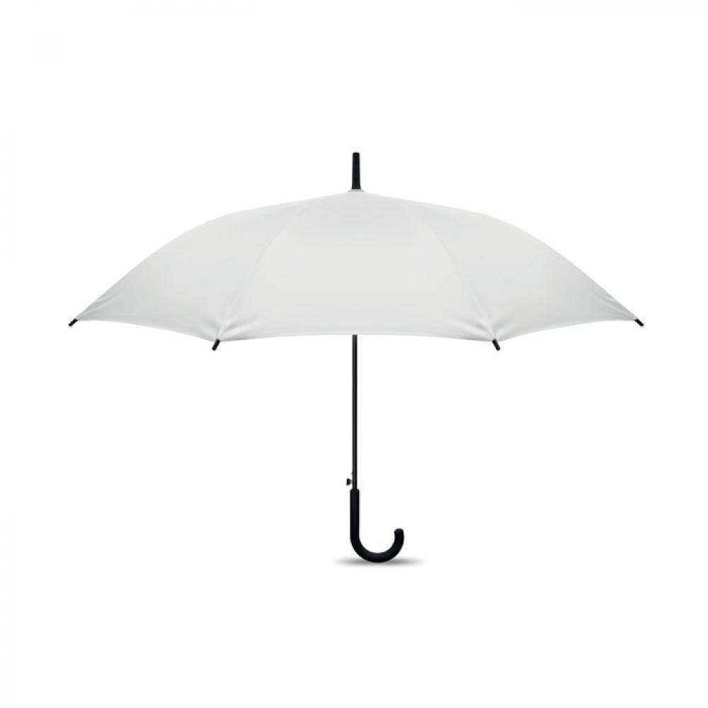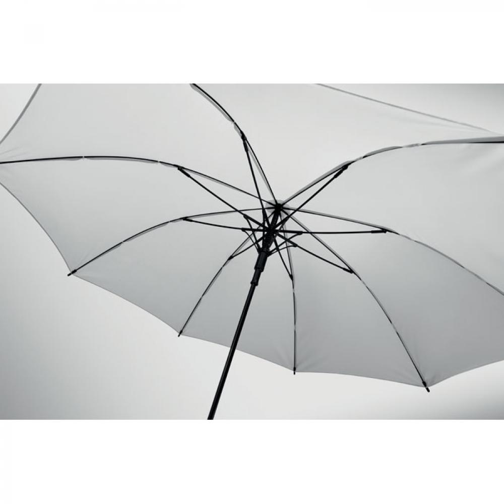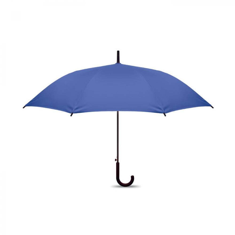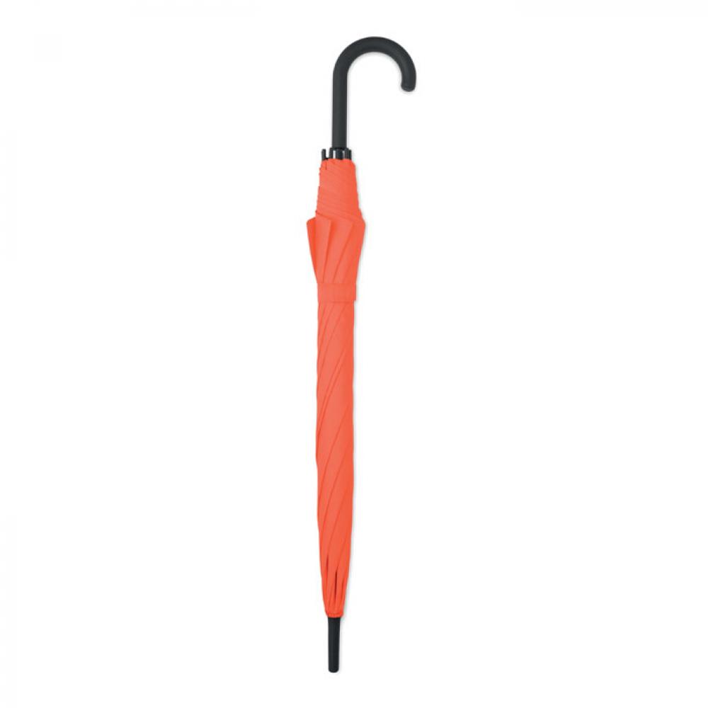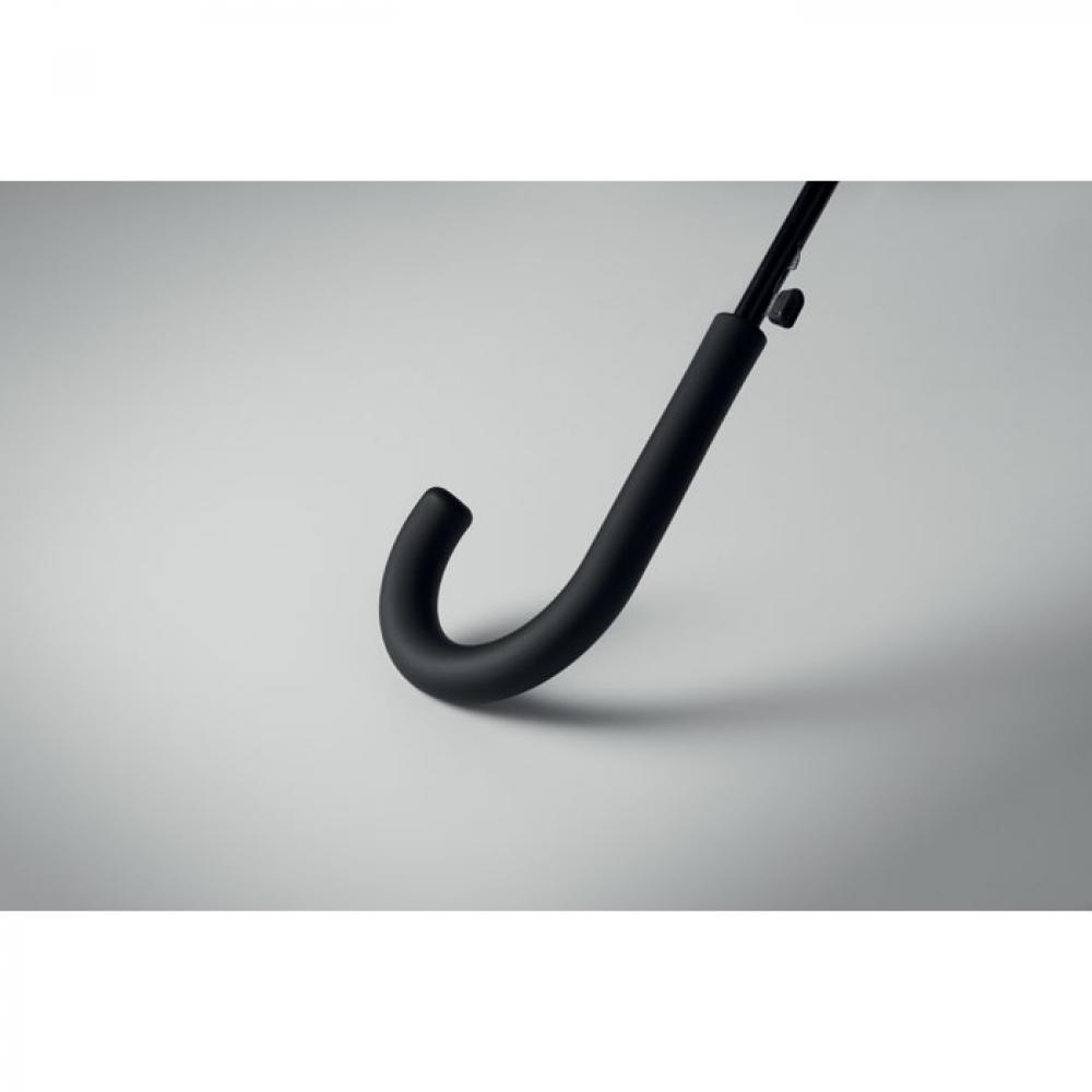 23-дюймовый полуавтоматический ветроустойчивый зонт из эпонжа 190T с каркасом и спицами из стекловолокна. Пластиковый наконечник. Прорезиненная изогнутая ручка из полипропилена.