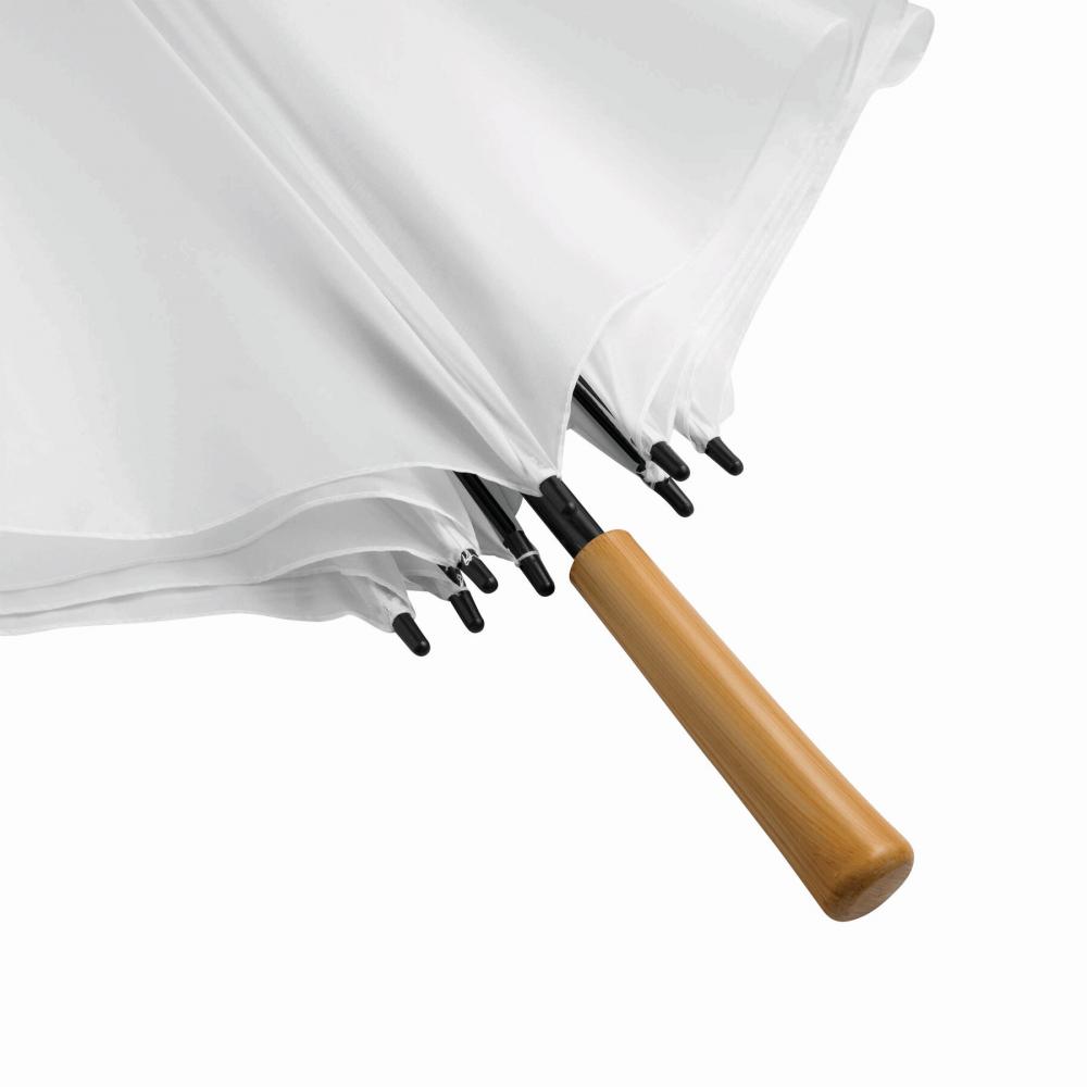 Зонт для гольфа RAINDROPS: металлический стержень и двойные металлические ребра, пластиковые наконечники, ручка с деревянным покрытием, капюшон из полиэстера, застежка на липучке
