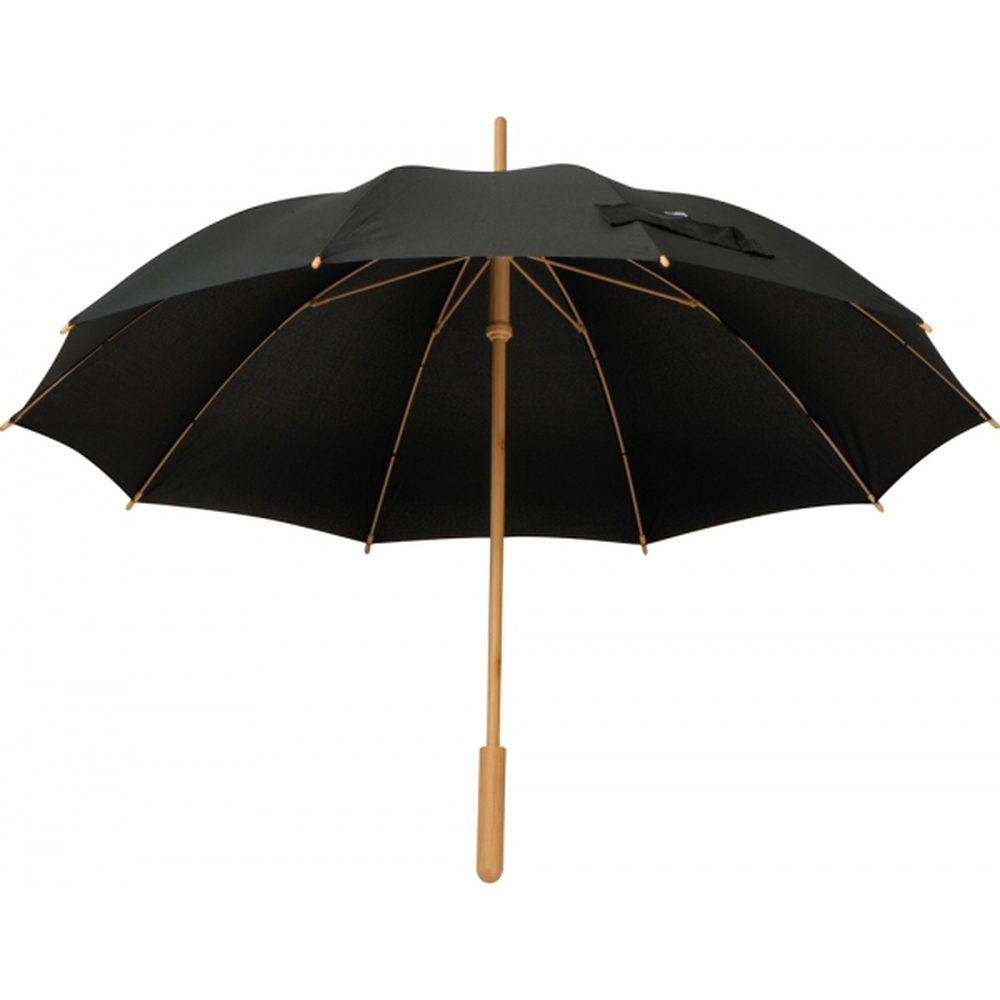 Большой штормозащитный зонт-трость из переработанного полиэстера (190T RPET) с бамбуковой ручкой и стойками из стекловолокна.